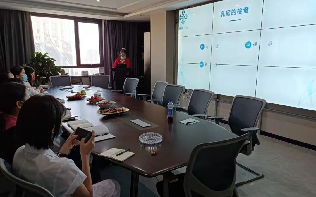 每周五,基础医疗事业部的各位都在总部接受培训。上图为本周五进行的蓝丁格尔乳腺治疗仪学习。