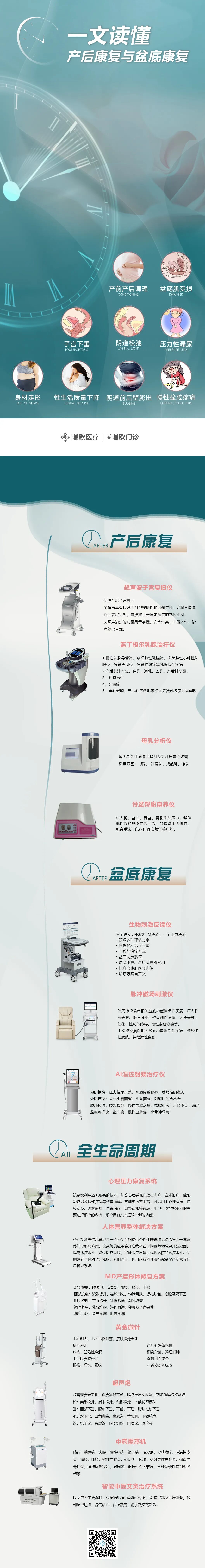 下面用一张图表让大家对所谓的“盆底和产康”,以及需要用到的设备仪器,有个更加直观的了解。